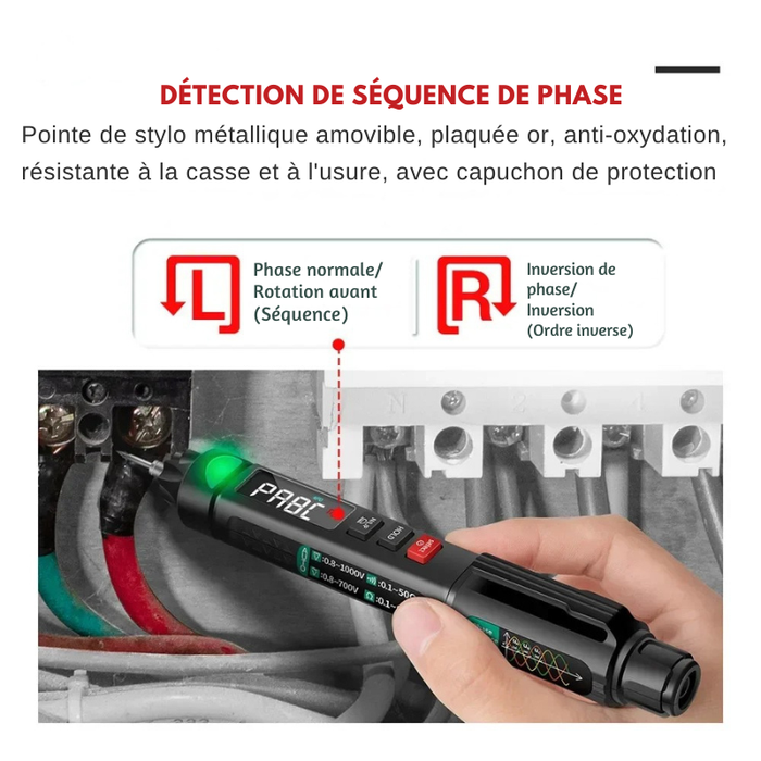 ✅ Sécurité : NCV (Sans contact), Live Wire Check (Phase/Neutre).