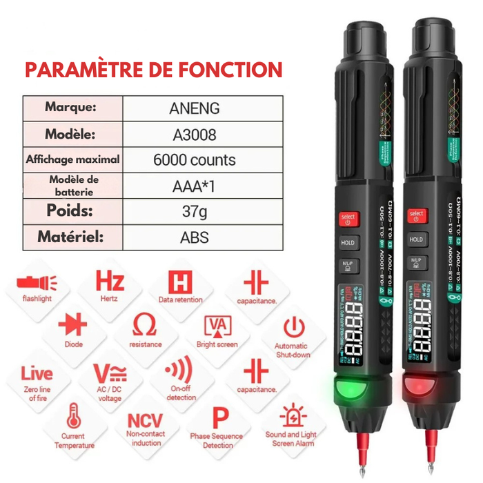 ✅ 1x Multimètre Stylo Numérique ANENG A3008.