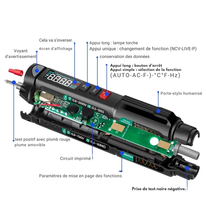 Multimètre Stylo Numérique Intelligent - Testeur de Tension & NCV